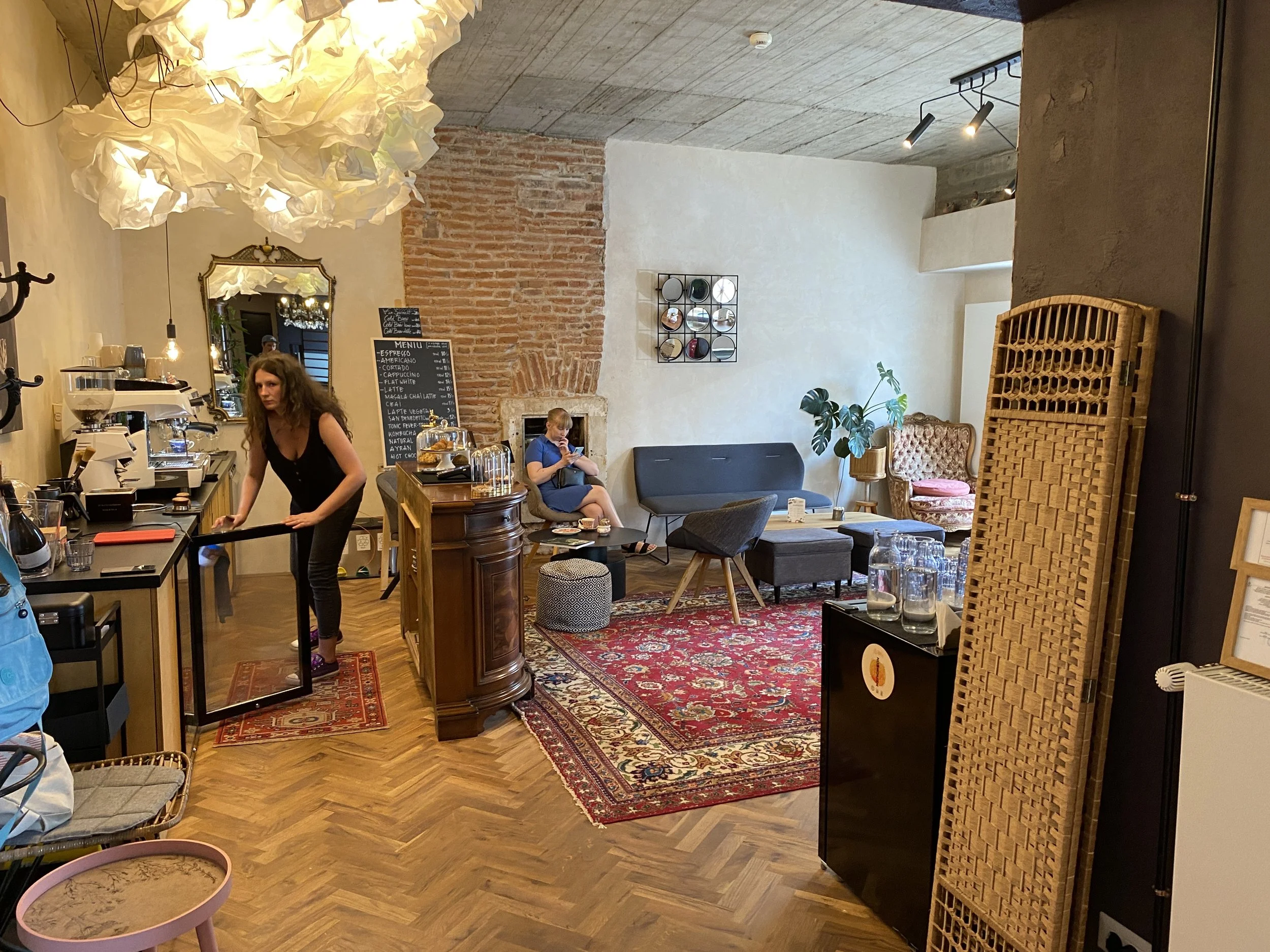 This was hands down the most magical space of them all. You enter in through a small courtyard with a bunch of seating removed from the mellow street. Enter into the coffee shop and it feels like you are in someones living room. Rugs and comfy chairs and ambiance galore. What a delight.
