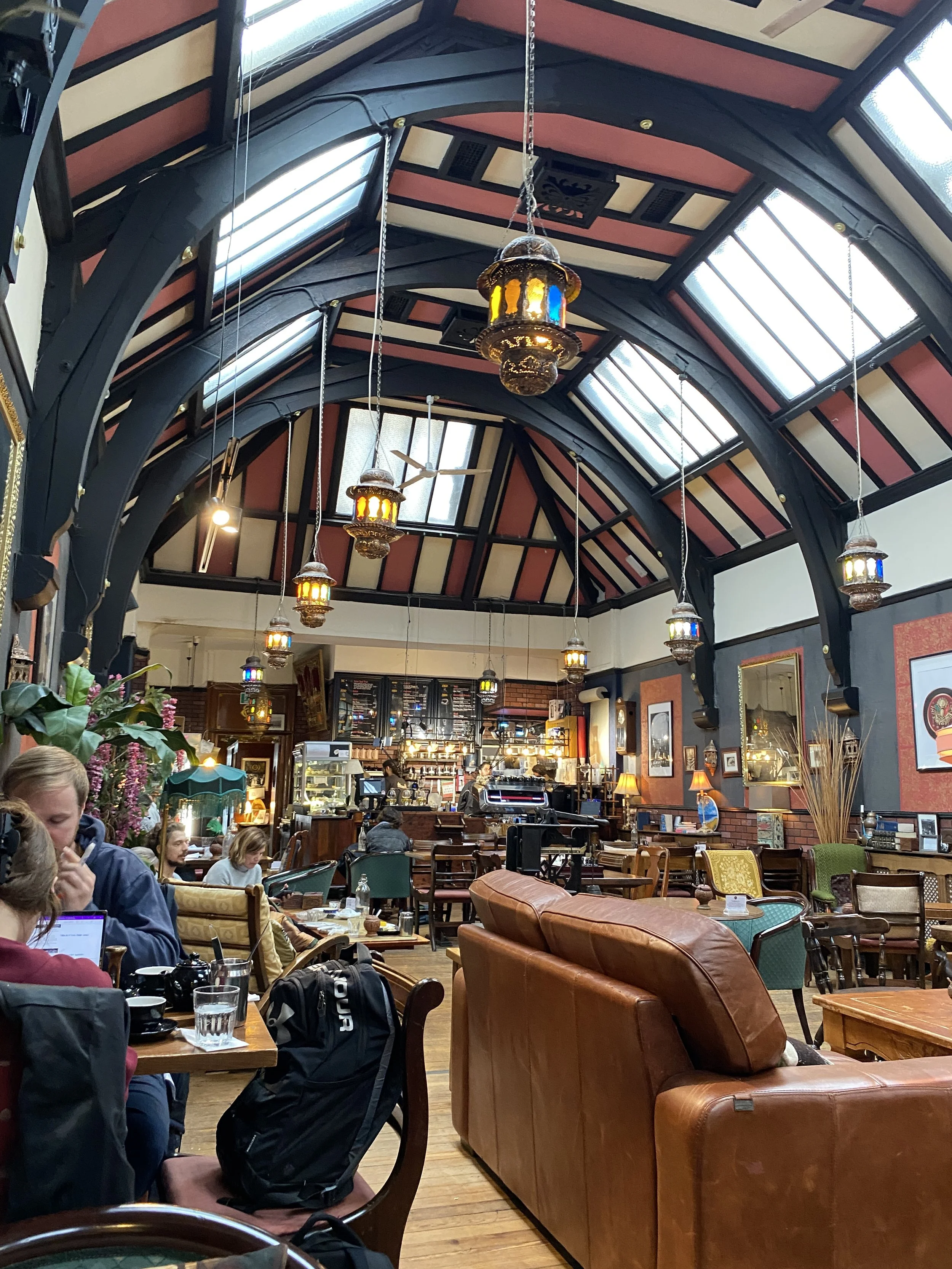 As soon as I walked in, you could tell this place was a vibe. Many coffee brewing contraptions, different varieties of siting options, and a beautiful ceiling letting in lots of natural light.