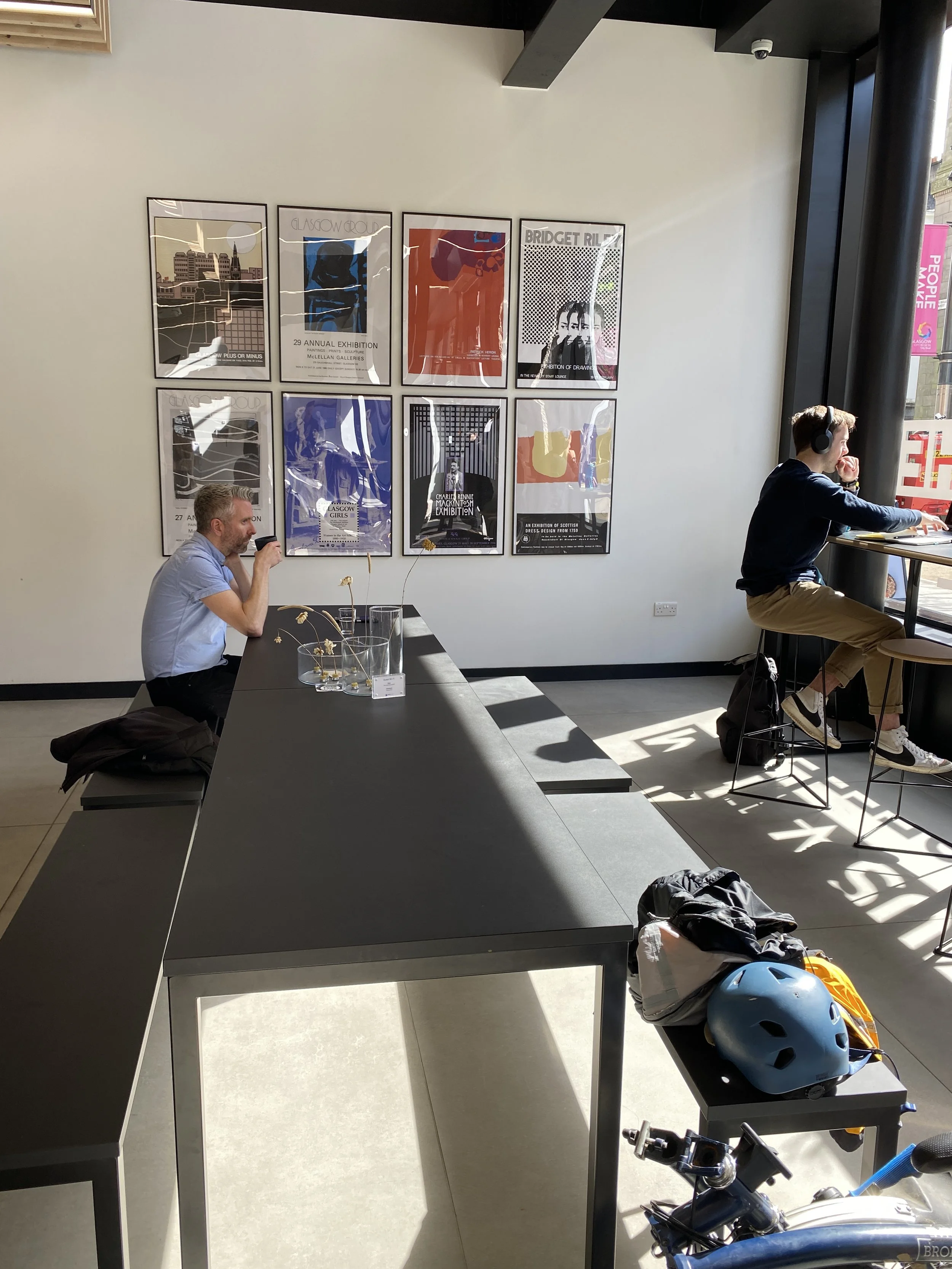 It was a very simple and sleek spot in the lobby of the Glasgow Art School. Everything felt very modern even the coffee machine. I had a coffee and a pastry. The barista was the loan employee very much doing one thing at a time. He was very friendly even offering suggestions of which pastries to avoid.